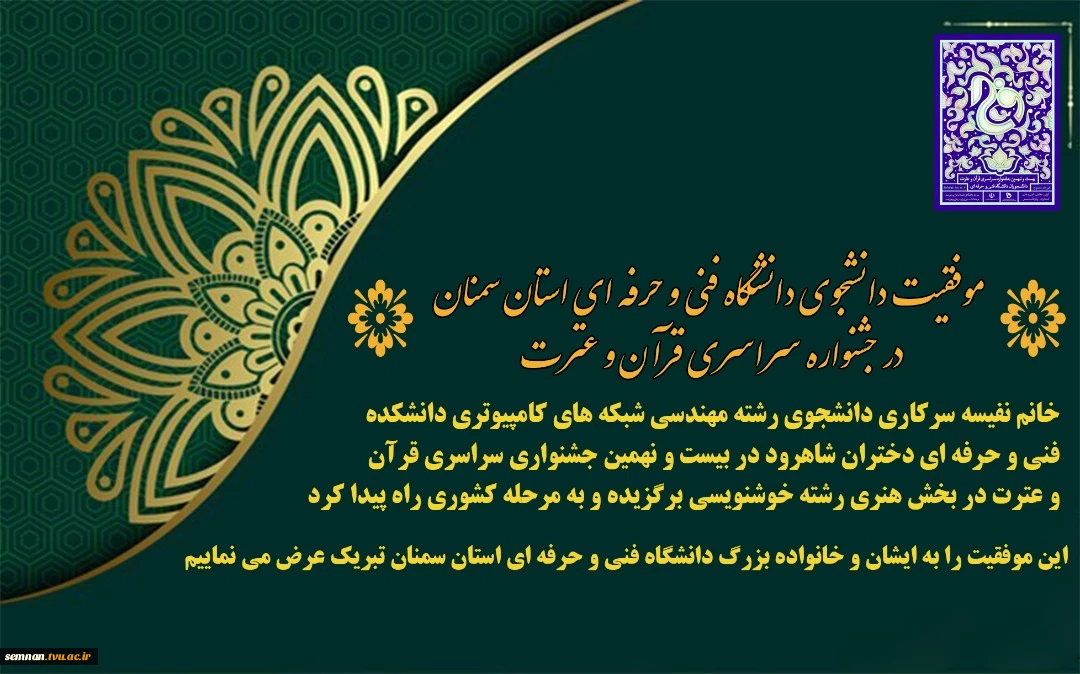 امتیاز دهید : درخشش دانشجویان دانشگاه فنی و حرفه ای استان سمنان و کسب رتبه های برتر بیست و نهمین جشنواره فرهنگی و هنری ( قرآن و عترت ) کشور 3 یکشنبه 23 آبان 1400 ساعت 10:28