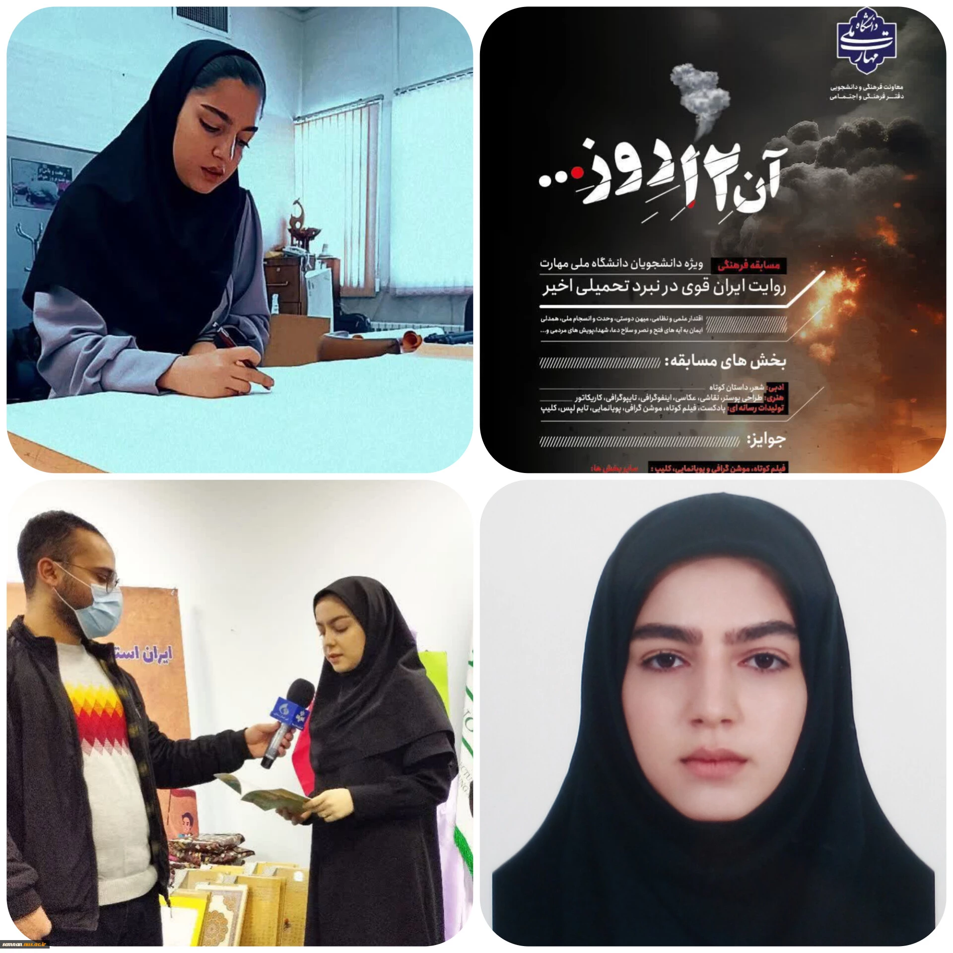 امتیاز دهید : دانشجوی دانشگاه ملی مهارت دختران سمنان مقام سوم کشوری مسابقه «آن ۱۲ روز...» را کسب کرد 2 سهشنبه 15 مهر 1404 ساعت 15:13